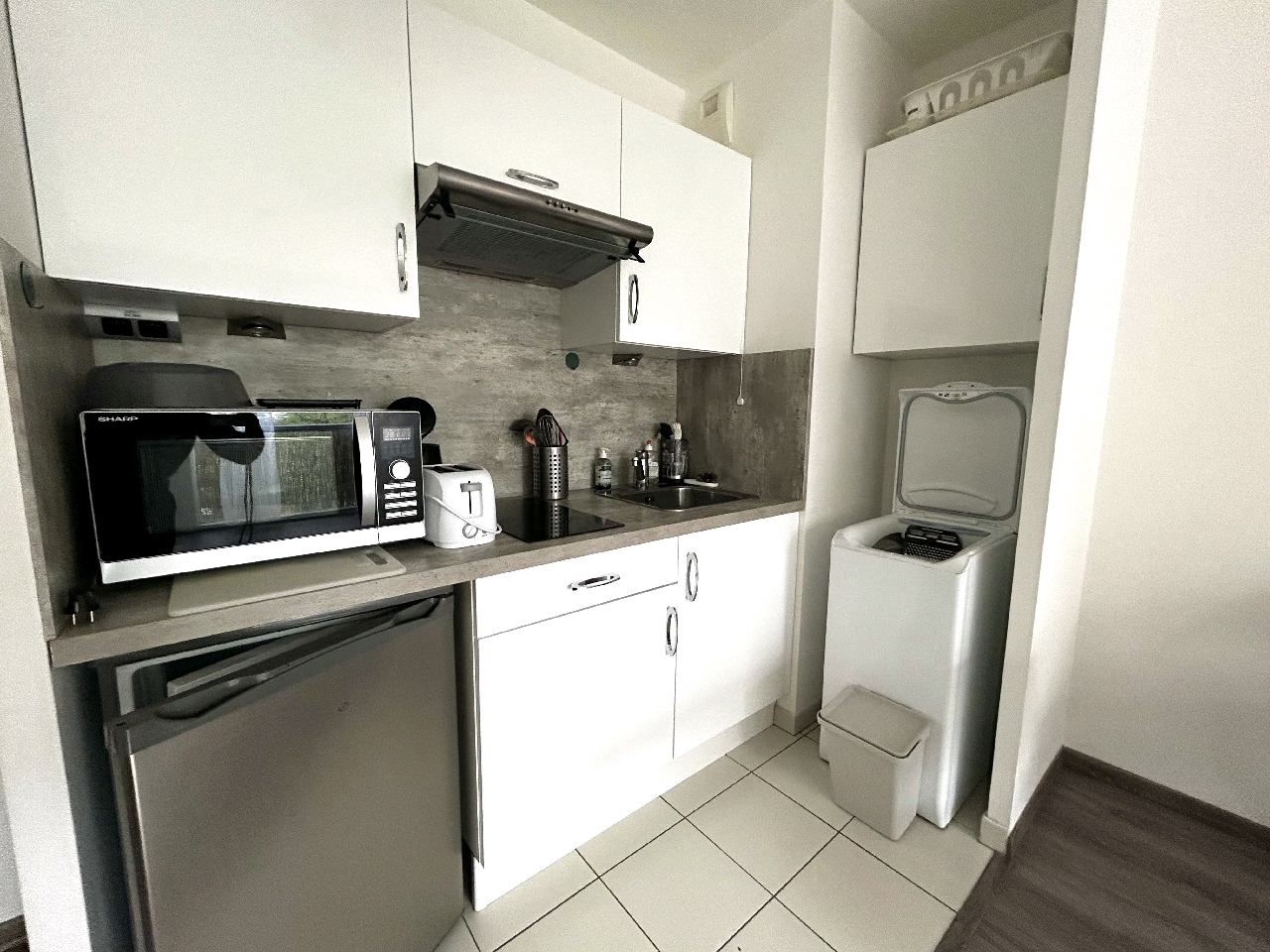 Il est composé d'une entrée, une pièce de vie avec cuisine aménagée et équipée ainsi que d'une grande salle d'eau avec WC.