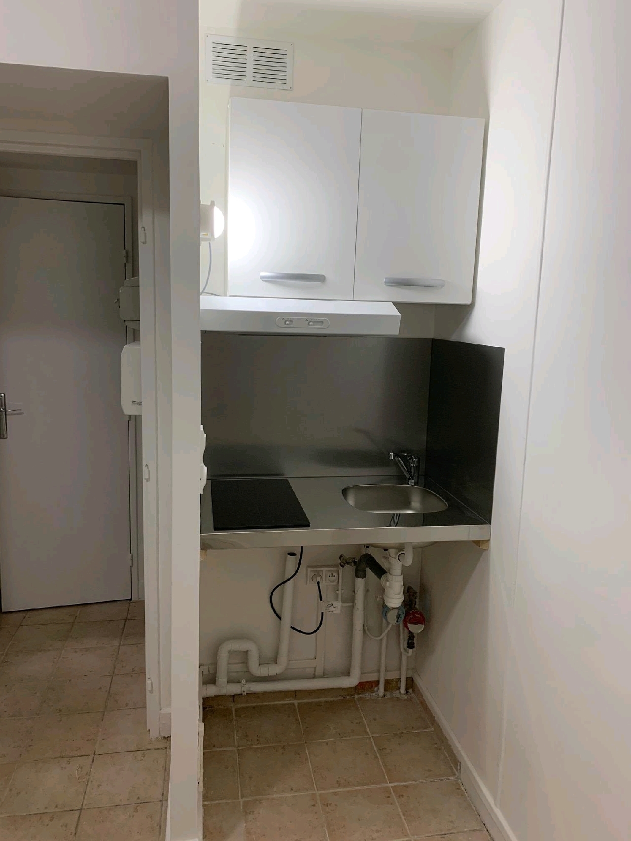 Composé d'une entrée, un séjour avec coin cuisine aménagée et équipée (plaque et hotte), placards, une salle d'eau avec WC.